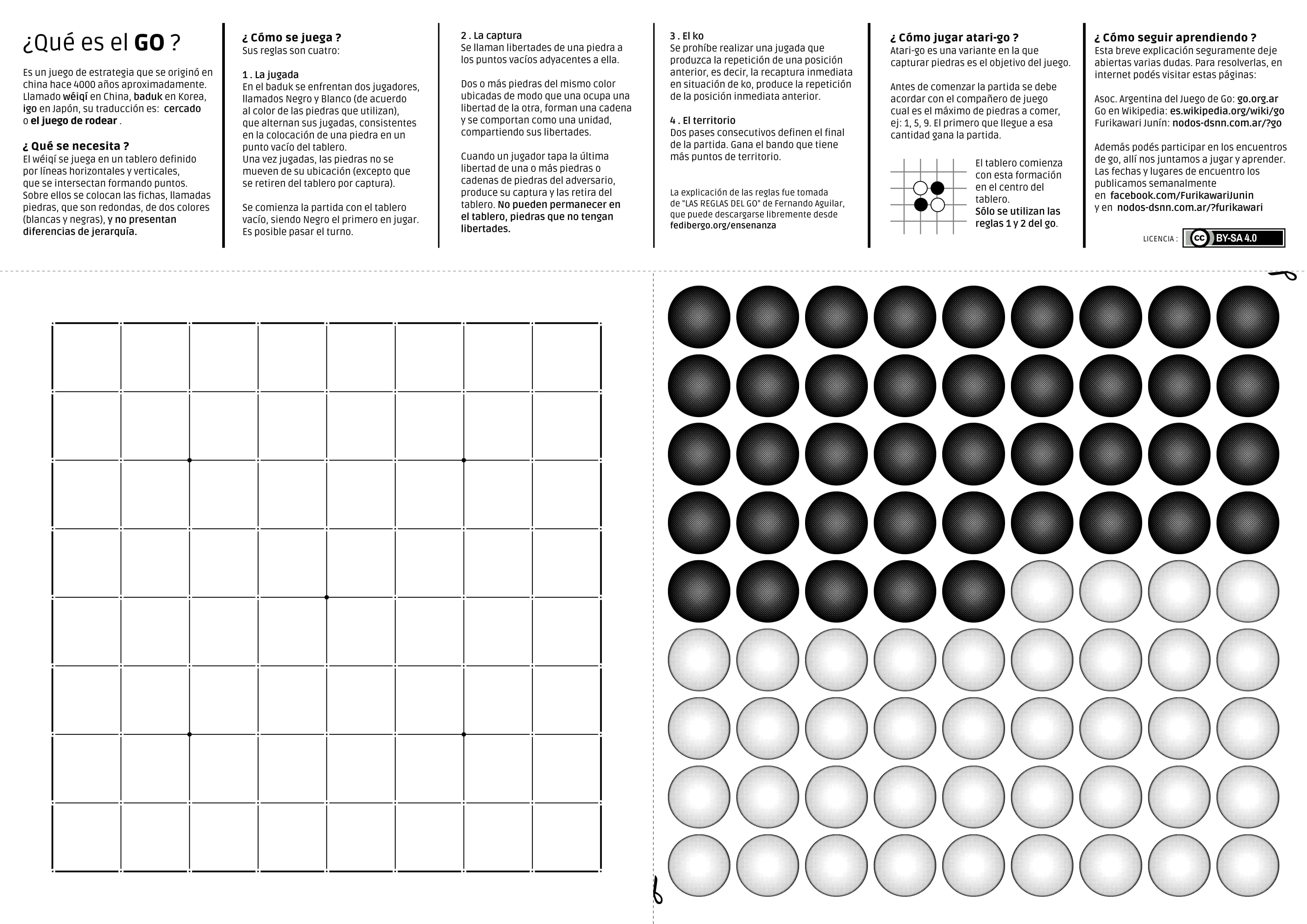 La Comisión de Principiantes elaboraró diversos diseños de tableros y piedras para imprimir en hojas A4 o A3. Simple y económico, el GO al alcance de todos.